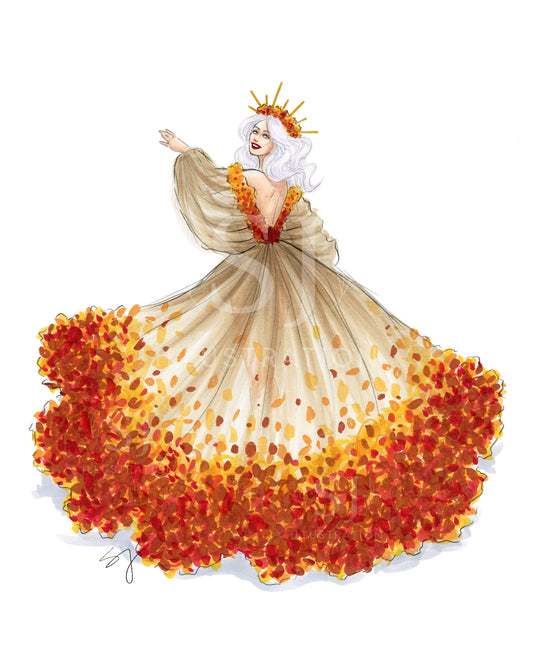 Leafy Queen | Fall Fashion Illustration (EMBELLISHED PRINT)