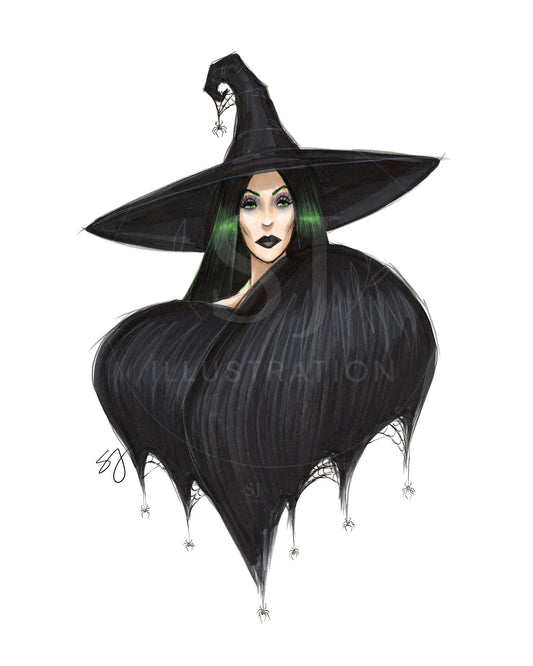 Monochrome Noir | Witchy Halloween Fashion Illustration (ART PRINT)