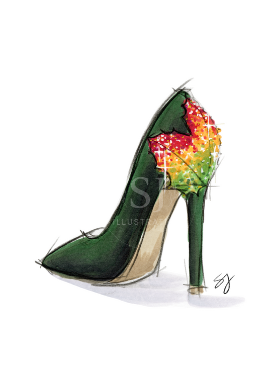 Step Into Fall | Fun Fall Stiletto Fashion Illustration (EMBELLISHED PRINT)