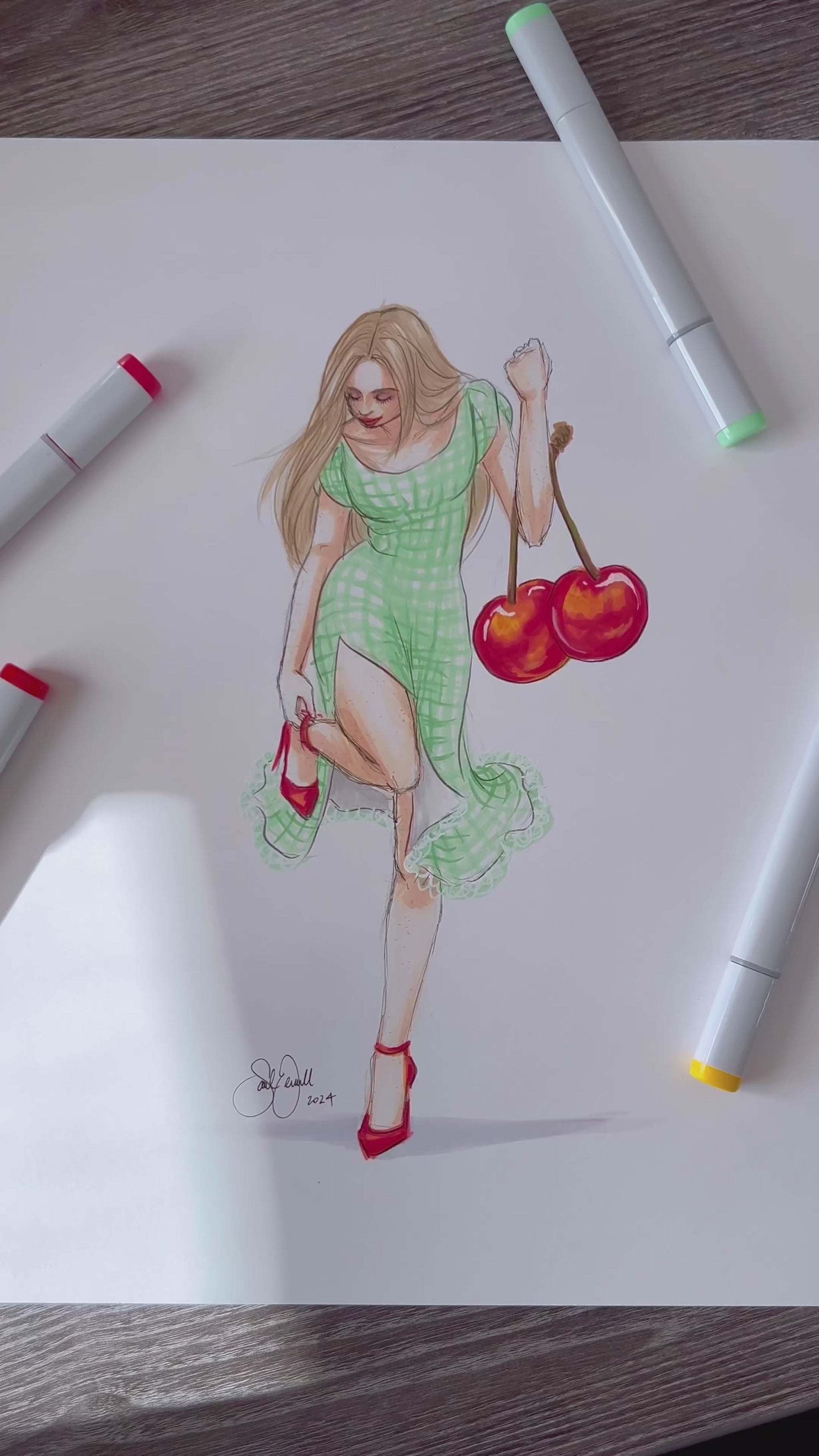 Cherries and Gingham | Fun Fashion Illustration (ORIGINAL)