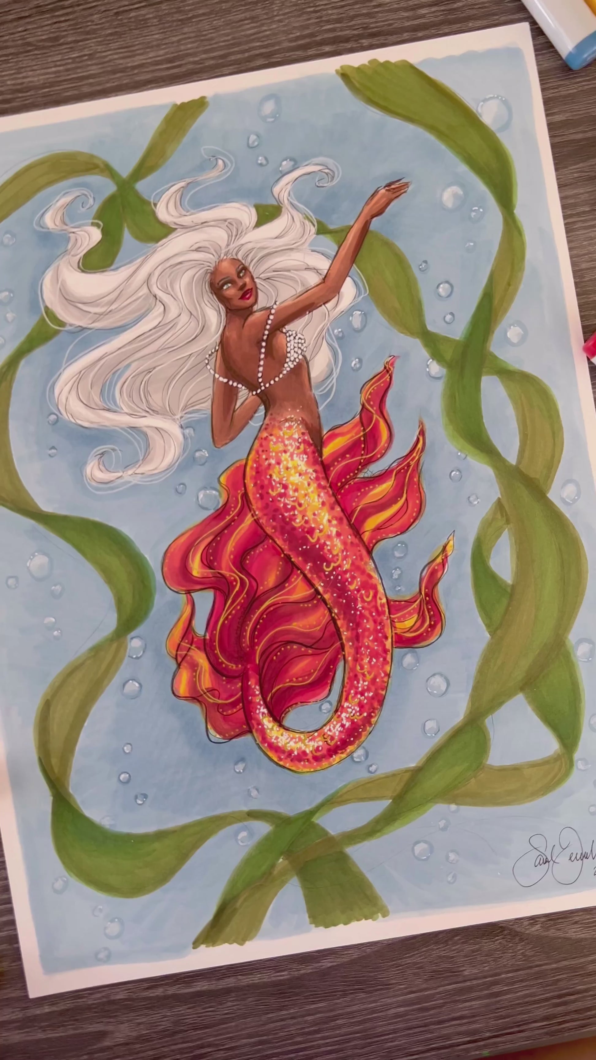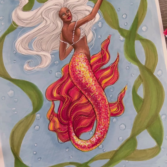 Underwater Flame Mermaid | Fantasy & Myth Illustration (ORIGINAL)
