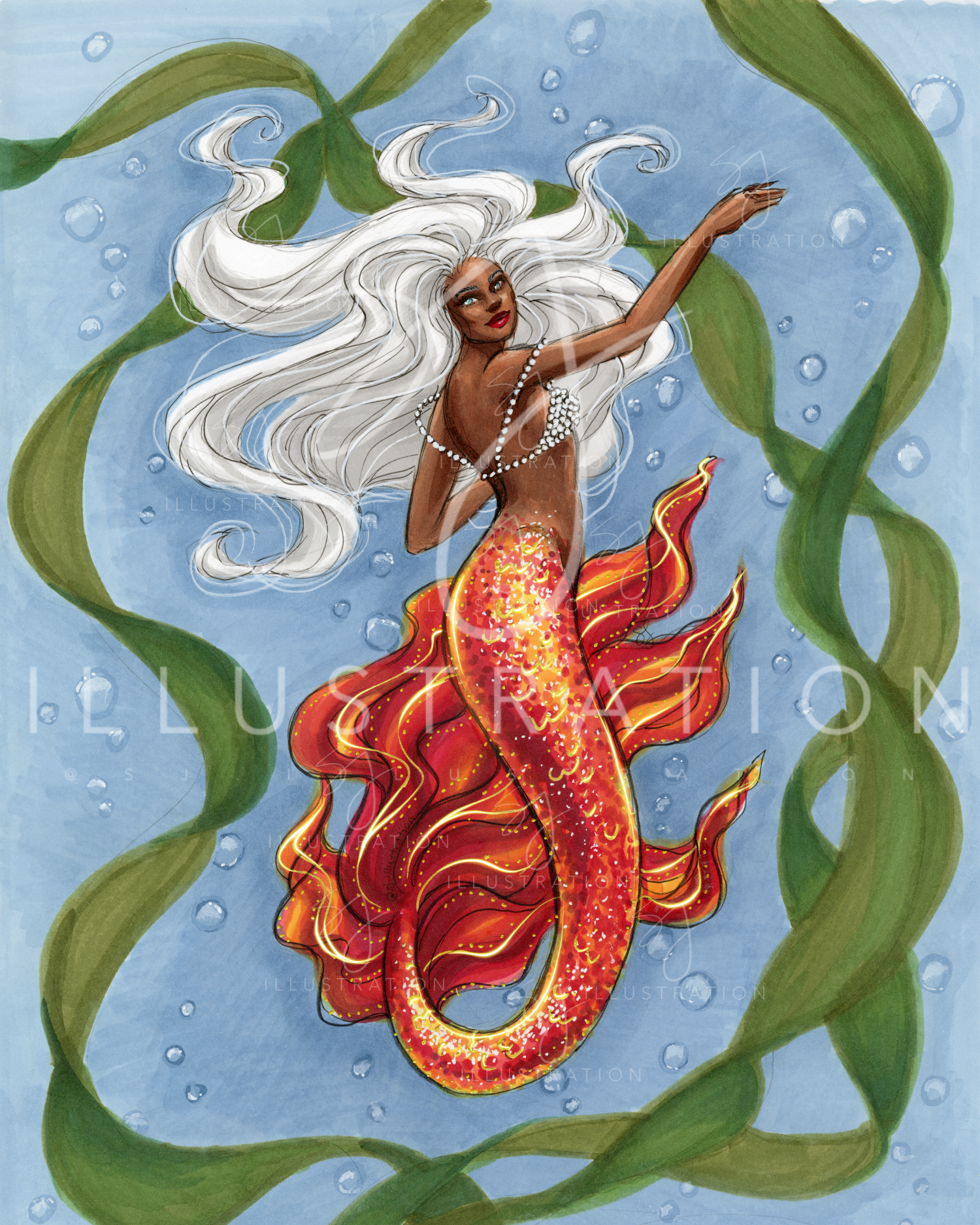 Underwater Flame Mermaid | Fantasy & Myth Illustration (PRINT)